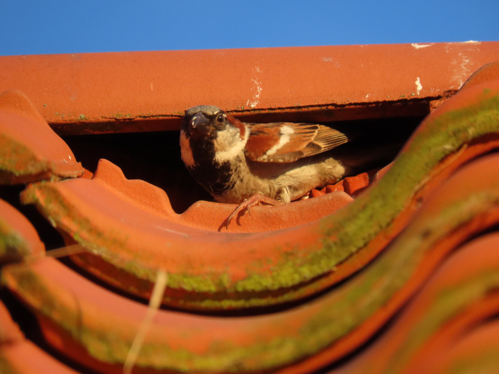 Vor gut drei Wochen hatte ich hier die Bauaktivität der Mehlschwalben am Giebel gepostet. Allerdings hat irgendwann der Kollege von #SpatzErwin - Günther, der Spatz vom anderen Dachende - seine Hausbesetzerqualitäten gezeigt. Ist ja nicht das erste Mal, dass wir mitverfolgen konnten, wie zuerst die Schwalben bauen, nur damit es sich anschließend die Spatzen bequem machen, die sich dann buchstäblich ins gemachte Nest setzen.