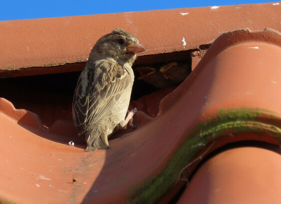 Die anfangs noch sehr leisen und zaghaften Stimmchen von unter der Firstschindel sind mittlerweile schon deutlich kräftiger und fordern minütlichen Futternachschub ein. #SpatzErwin und Renate kommen dem natürlich nach :blobcatlove: