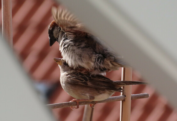 Jedenfalls sind #SpatzErwin und Renate augenscheinlich schon wieder damit beschäftigt, dieses Jahr noch einmal nachzulegen. Direkt vor unserem Küchenfenster! Skandalös!