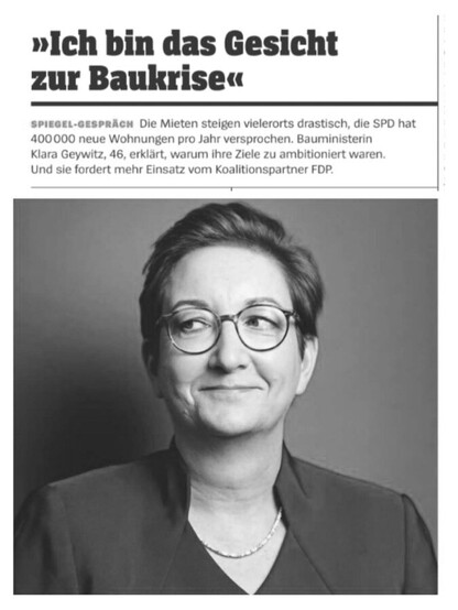Während SPD-Kanzler Scholz in Berlin Ratschläge und Haltungsnoten zum Thema Bauen & Mieten verteilt, erklärt sich die SPD-Bauministerin selber zum "Gesicht zur Baukrise"...