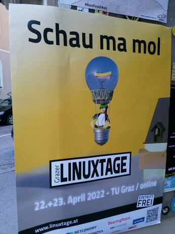 Linuxtage sind bald heuer Vor Ort und Online - heute auch ein Plakat beim Spektral entdeckt #graz #spektral #linuxtage