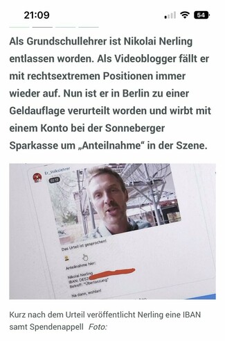 Mit freundlicher Unterstützung der #Sparkasse #Sonneberg kann der vorbestrafte #Neonazi und #Holocaustleugner Nikolai Nerling aka der #Volkslehrer ein #Spendenkonto betreiben und Geld für #Propagandaaktionen sammeln.