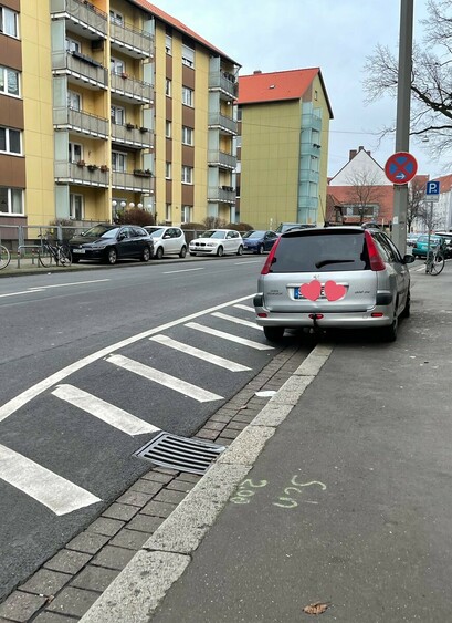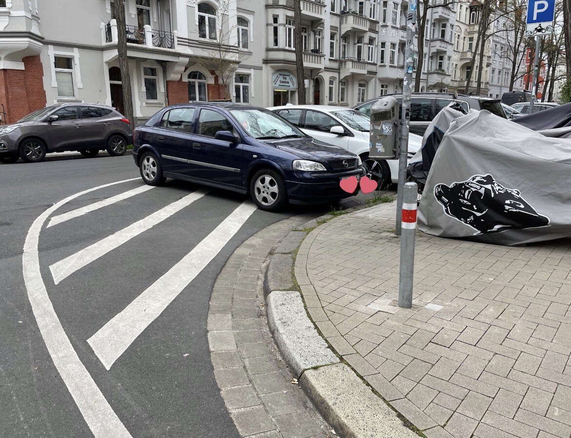 Letze Woche hat die Fahrradstaffel der Polizei Hannover eine zugeparkte Sperrfläche mit einem Knöllchen geahndet.