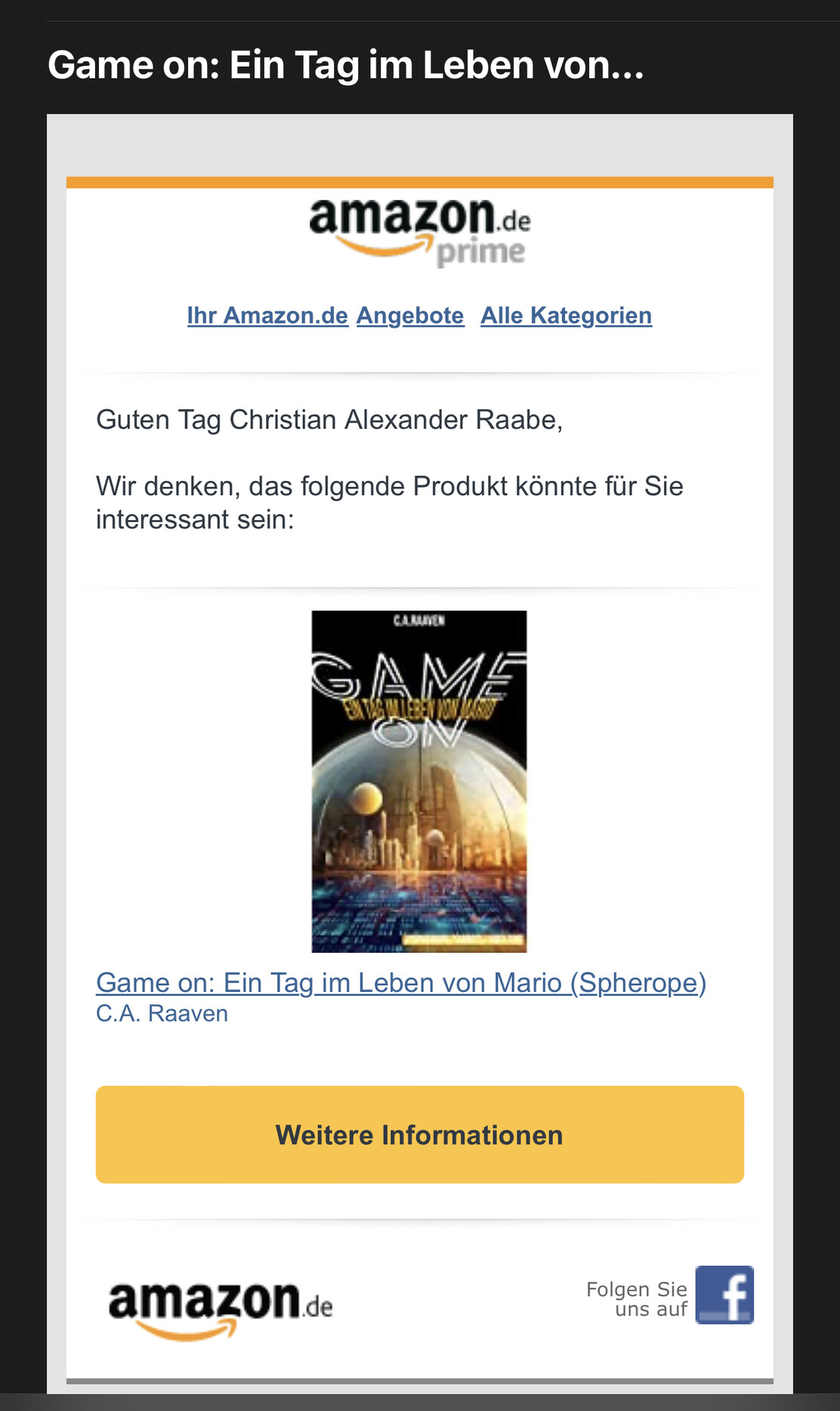 Na sieh mal einer an. Amazon empfiehlt mir meine eigene Kurzgeschichte 😂 Aber im Ernst: Die kann ich auch empfehlen. Ab dem 19.2. ist sie sogar für 5 Tage kostenlos 😇 #justsaying #kurzgeschichte #spherope