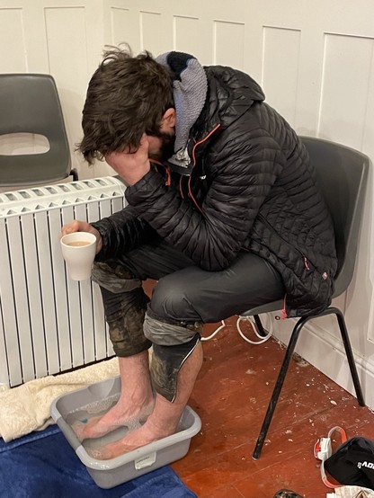 Jovica, first man on the #SpineChallengerNorth looking strong in Alstonβ¦ Lasagne in, bit of admin and back out just as second man Tom came in at a pace. Both looking and feeling happy despite a rather Cross Felly Cross Fell overnight! πͺπ»πͺπ»