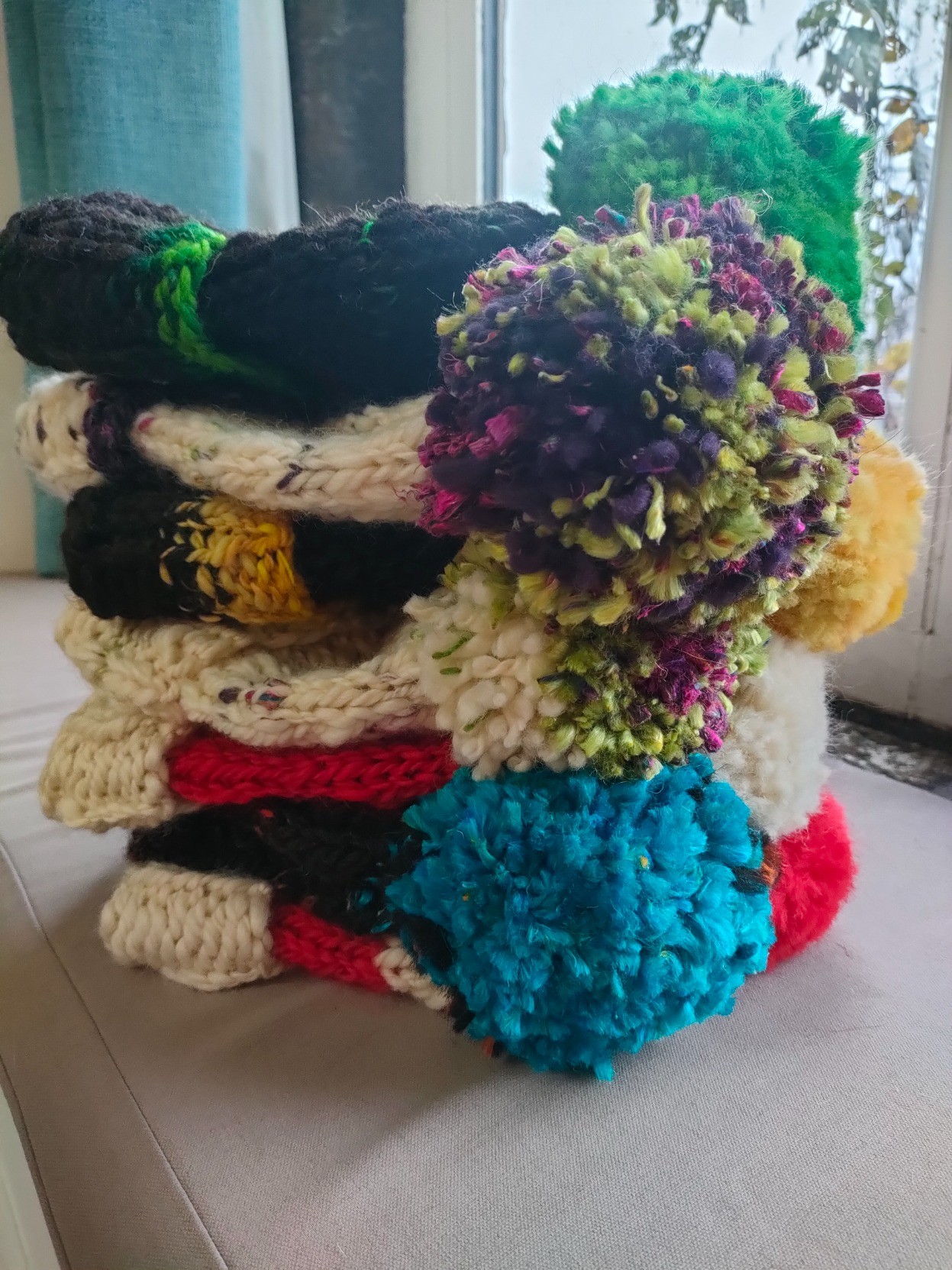 Here is the most recent pile of hats. All hand spun then knitted as gifts for loved ones.