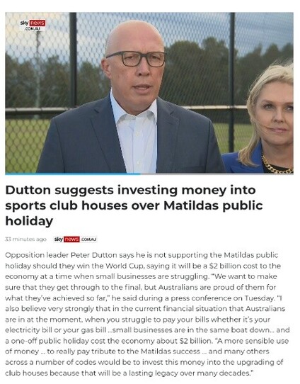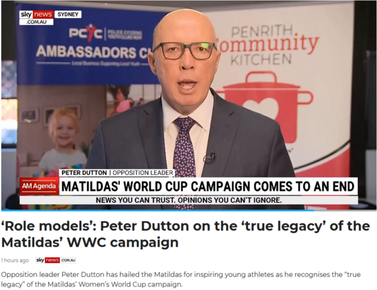 Peter Dutton's interpretation of the Matildas true legacy is more #SportsRorts with a $250 million promise if he becomes prime minister. #auspol