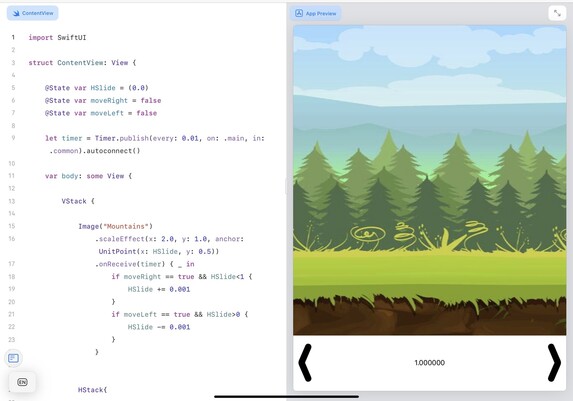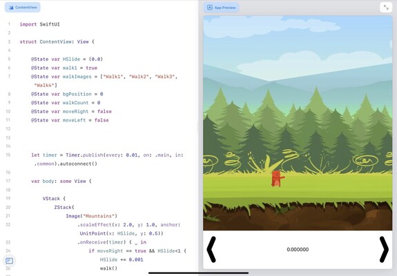 So I added a few sprite textures for a walking animation to this slide scroller in #SwiftUI.