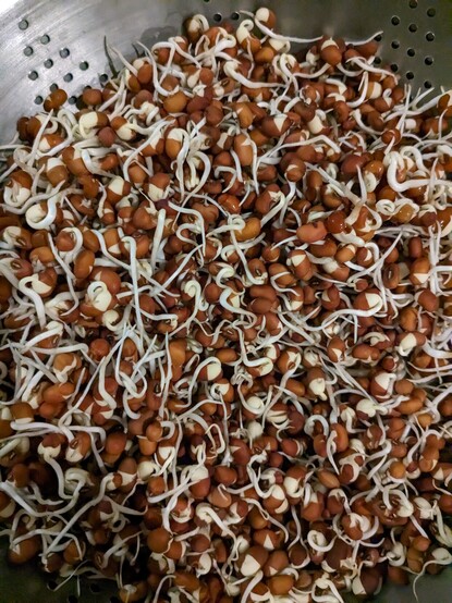 Red choli (adzuki) sprouted for several days. Will make "usal" with them tomorrow night. (I am using the recipe I have for moth beans, although it appears a coconut based dish would also be a good way to use these.