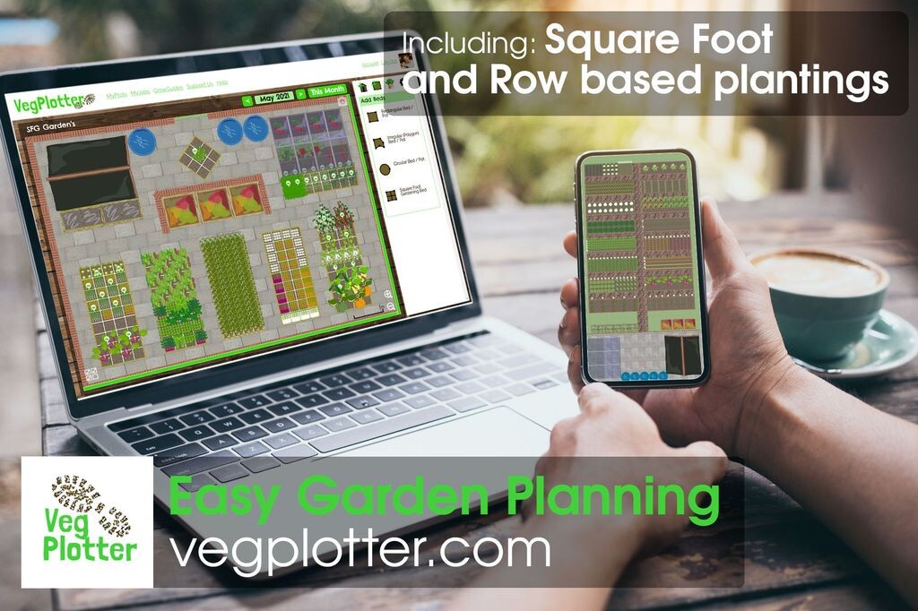 Our Vegetable Garden Planner is super easy to use on computer or mobile. Just drag on a bed then add the plants you want to grow. Use both #squarefootgardening or row based styles #vegetablegarden #allotmentgarden #growyourownfood #urbanfarming #homestead