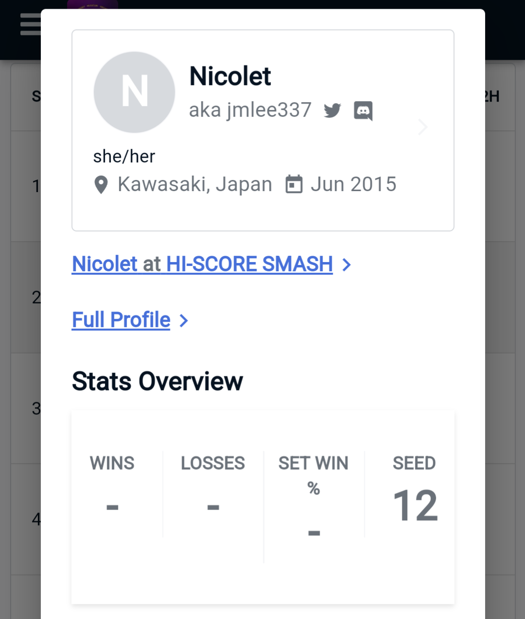 I do Melee stuff! Formerly Seattle, but now Tokyo. I had a bit of a false start in 2009, but I've been continuously active since 2014.