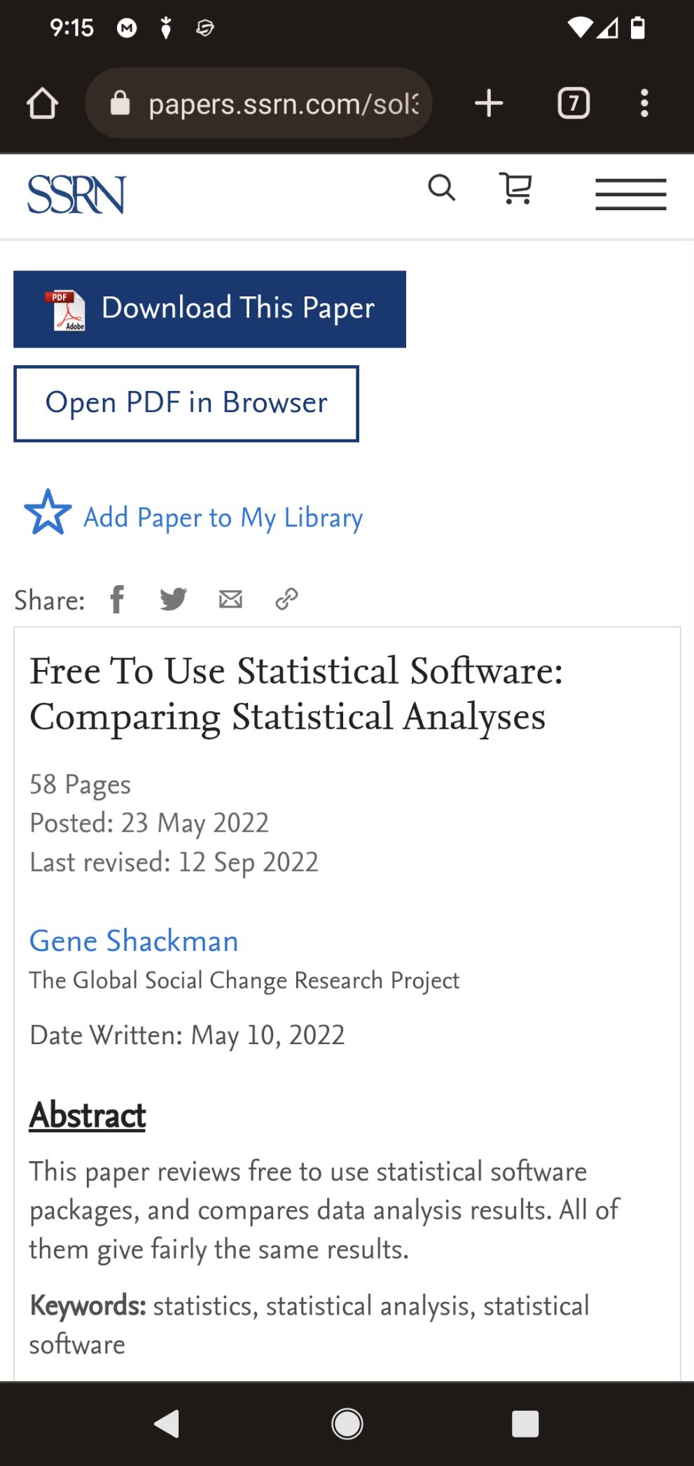 Hi all. I reviewed free to use, easy to use, statistical software. I'm glad to report that they all gave pretty much the same analysis results. That's good.