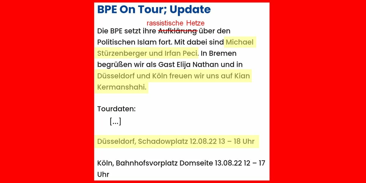 Die rassistische "Bürgerbewegung PAX EUROPA" (#noBPE) des Hetzers Michael #Stürzenberger ist auf Tour.