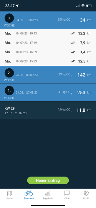 Letzte Woche war es etwas weniger, also diese Woche noch einmal in den Endspurt gehen. #Stadtradeln