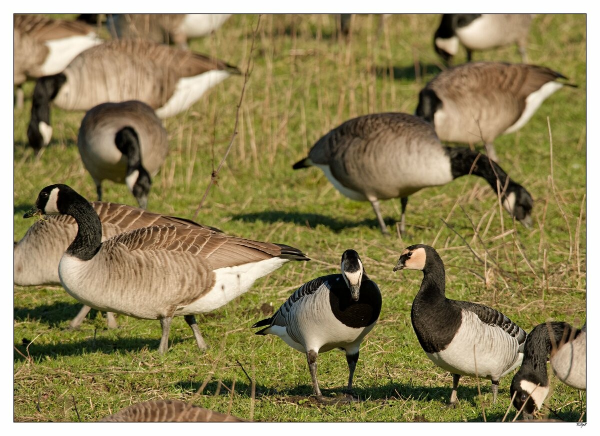 2023.01.02: At #StAidans @RSPBAireValley Leeds; Barnacle geese (one possible Red-Breasted goose hybrid) among the Canadas.