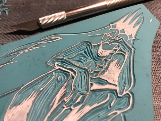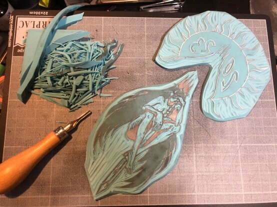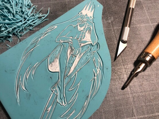 Back on it and I won’t stop until I’m done #Wip #StampMaking #Linocut #Linogravure
