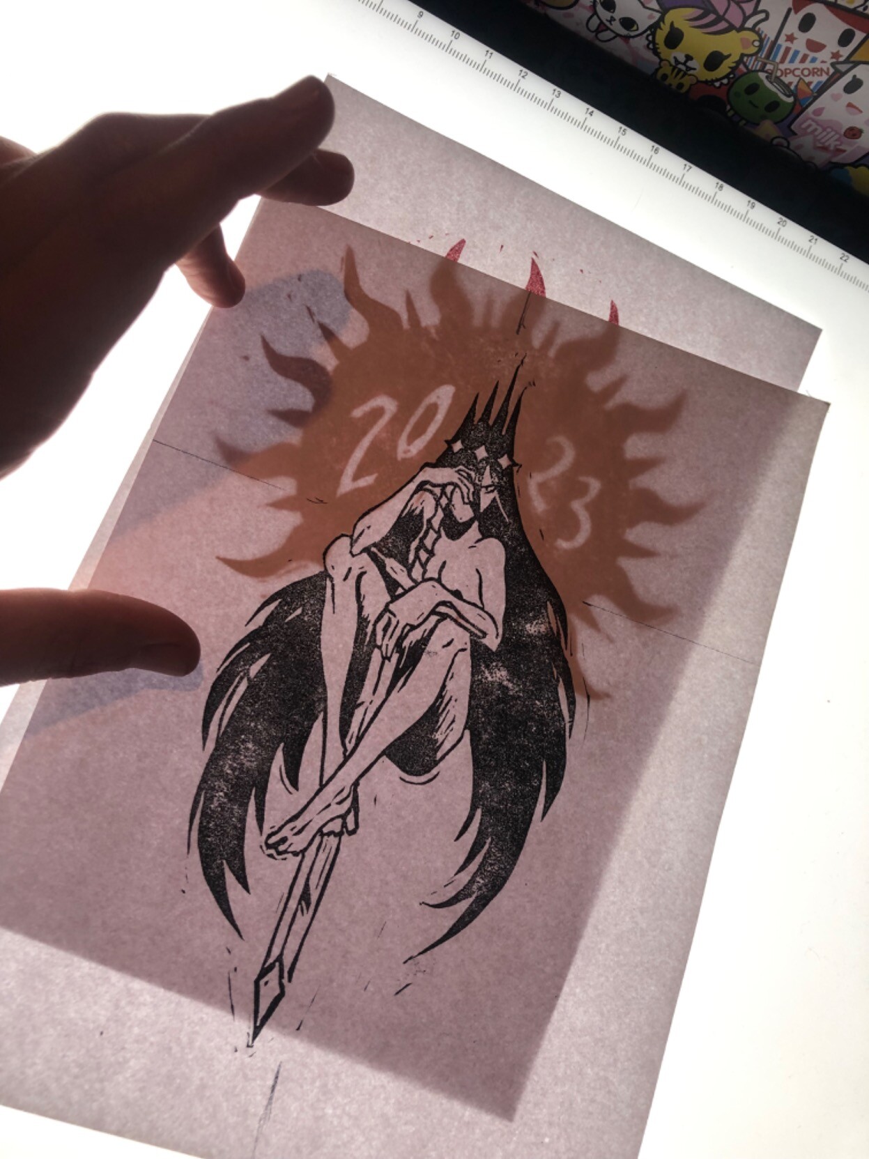 What a relief, it work ! It’s my placement mark I have to change. Ok let’s do it 🔥 #wip #LinoCut #StampMaking
