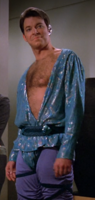 Heute geht es auf einen Planeten auf dem das Matriarchat herrscht udn Riker einen heißen Fummel tragen muss, der sein Brusthaar zur Geltung bringt:
