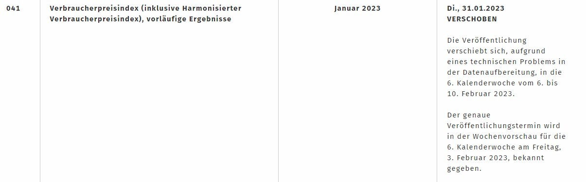 Das #StatistischeBundesamt verschiebt die Veröffentlichung der neuen #Verbraucherpreise auf den 6. - 10. Februar.