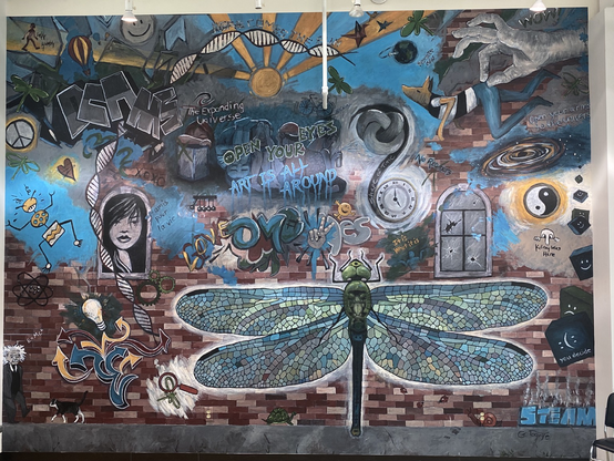 The #STEAM mural at the (Children’s) #DiscoveryCenter at Murfree Spring (restored wetlands) in downtown Murfreesboro, #Tennessee. Artist: Ginny Togrye. ⬇️