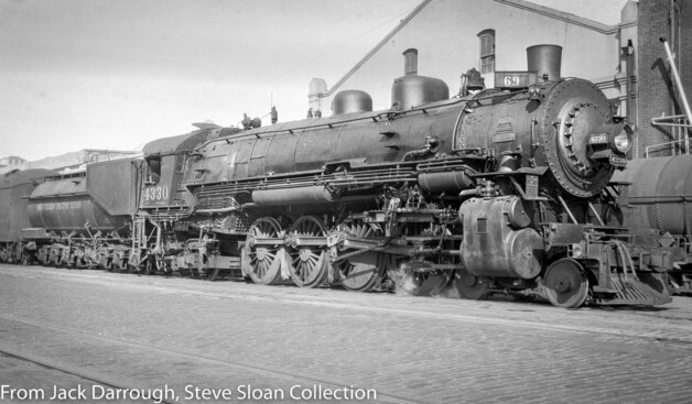 Thursday, June 10, 1937, Southern Pacific (SP) 4330 is in San Francisco, CA (on train 69, The Coaster.) Photographer most likely Bill Darrough. Reportedly: SP MT-3 4-8-2 4330 was built by SP's Sacramento Shops in 1925, vacated and scrapped in 1956.