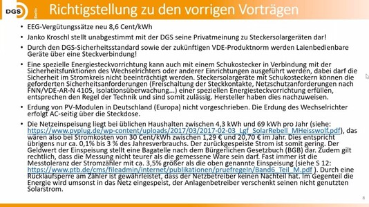 Ralf Haselhuhn von der @DGSBerlBrandenb rückt bei seinem Vortrag beim Webforum #SteckerPV des Bauzentrums der Stadt #München einiges ins rechte Licht: Schuko ist zulässig, wenn die elektrische Sicherheit gewährleistet ist - etwa durch den Wechselrichter.