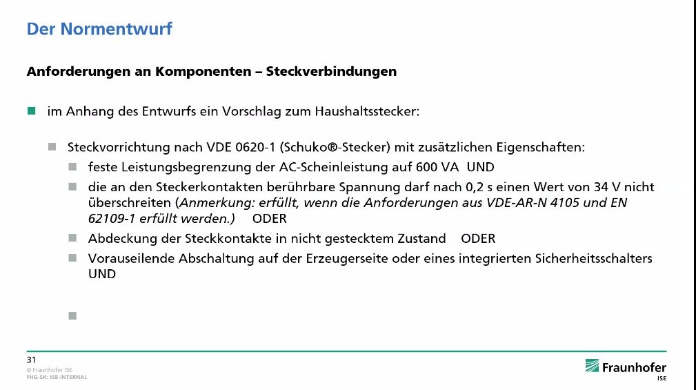 Hermann Laukamp vom @FraunhoferISE stellt auf dem Webforum #SteckerPV vom Bauzentrum #München die neue Produktnorm fürs #Balkonkraftwerk vor. Der Schuko-Anschluss soll hier über einem Anhang zugelassen werden. Ende Oktober soll die Entwurffassung veröffentlicht werden!