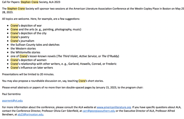 "Places among the stars" is the first song from Lowell Liebermann's Three Poems of Stephen Crane, op. 11 song cycle.