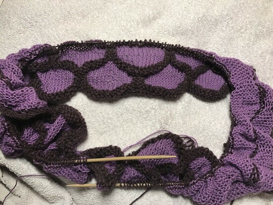 Ich versuch mich mal am #paintinghoneycombs shawl von #StephenWest. Ich hab immer noch ziemliche Konzentrationsprobleme und bin krank, Bücher lesen geht nicht, aber dieses Muster braucht nicht viel Aufmerksamkeit. Es geht langsam voran, weil das Rheuma meine Finger im Griff hat aber es macht Spaß. #stricken