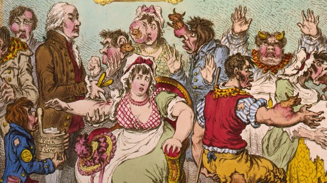 Schon 1802 waren manche der Meinung, die Pocken Impfung würde die geimpften Personen in Kühe verwandeln.