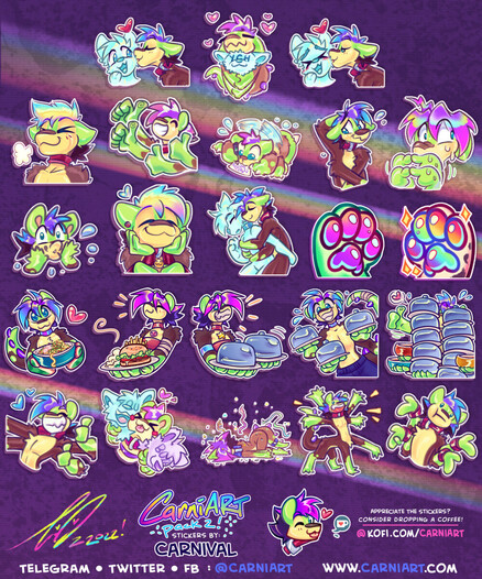 Grab the https://t.me/addstickers/CarniARTpack, and https://t.me/addstickers/MultiCarni Stickies here