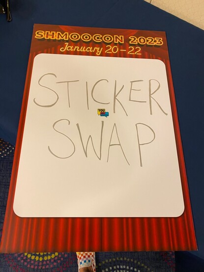 A wild @ShmooCon #stickerswap appears! Take a sticker leave a sticker outside of the RF CTF