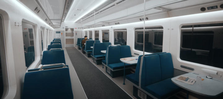 I love how the moving train is used as a metaphor for moving while also being still in a sense (like in relative motion)