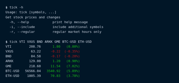 Nice, @hughbien@twitter.com made a neat little CLI interface to have a look at #stockprices.
