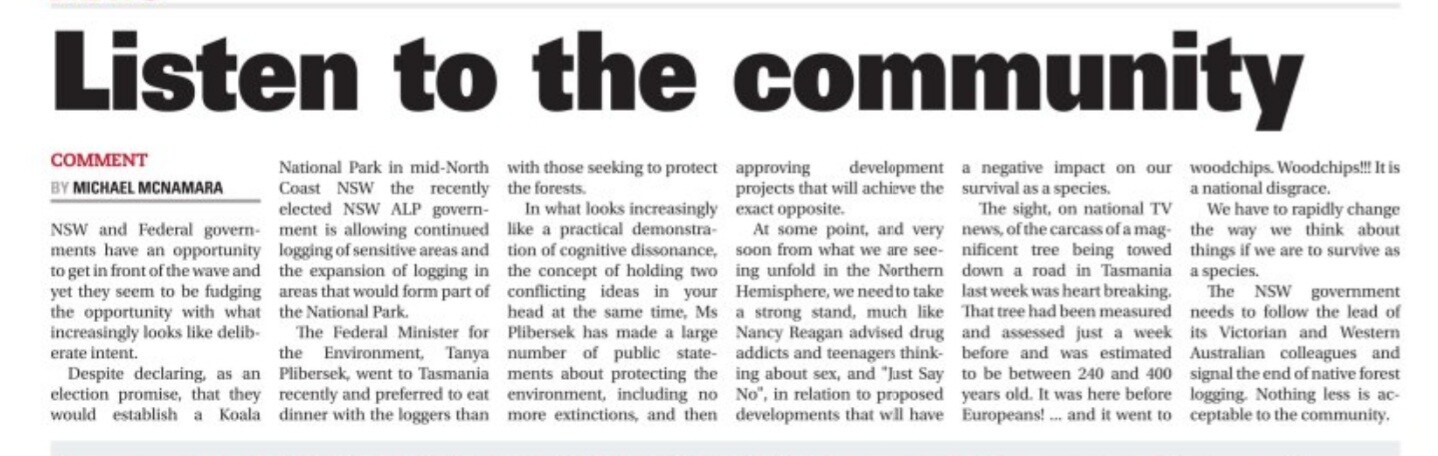 My article in this week's Glen Innes Examiner calls for the NSW government to #StopNativeForestLogging .