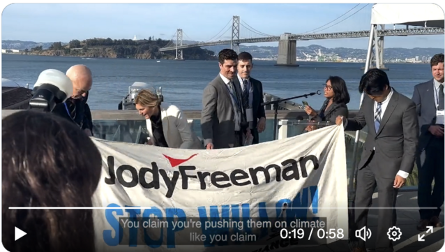 pleased to partner with @climatedefiance to confront env. law prof and #fossilfuel shill Jody Freeman last night #StopWillow