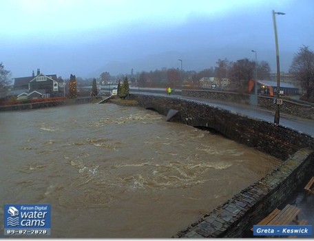River Greta change in river levels between yesterday evening and this morning. That’s quite a reaction for a 140 square km catchment. #StormCiara #flooding #Cumbria #keswick