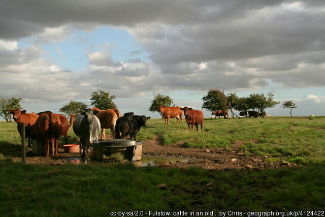 "Fulstow: cattle in an old pasture field on a stormy afternoon"