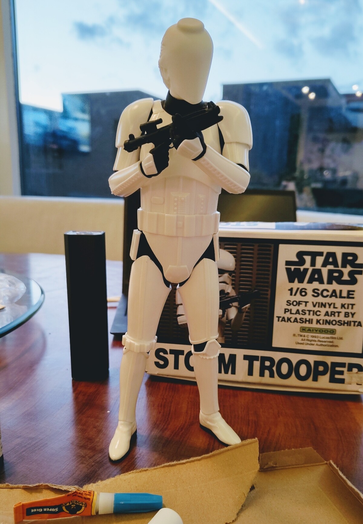 A friend's birthday is coming up and he mentioned he had always wanted a stormtrooper figure, then I remembered I had a stormtrooper vinyl kit still not made from over 20 years ago. Only to find out halfway it's incomplete. No helmet...