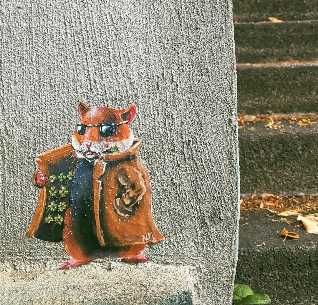 🐹Artist: #streetartNM - in City: #Flensburg Sankt-Jürgen-Treppe Germany 🇩🇪 - Title: "Der kleine Hamster mit Taschen voll Glück"🍀 (Nr. 1)" - #streetart #mastoart #art #pasteup