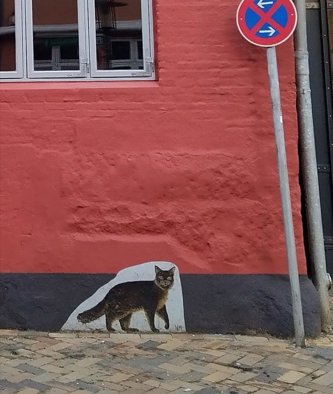 🐈Artist: #streetartNM (N.M.) in - City: #Flensburg Norderstr. - #streetart #mastoart #art #mural #cats #catsofMastodon