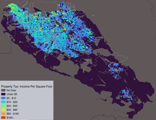 But outside of the downtowns cities also get $$$ from large office parks, see for example the big orange dot where the Apple campus is.