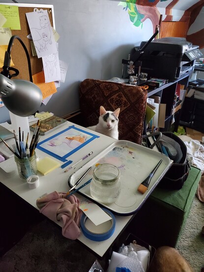 #Atelierkatzen #studiocat #catsonmastadon #catcontent #officecat #KatzenSchafe #studiocat