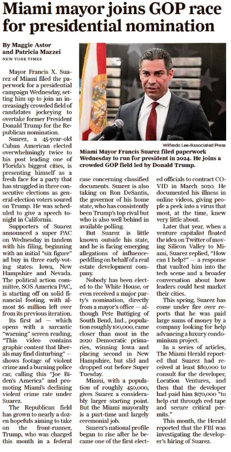 In the vision of #Mayor Francis #Suarez the city’s chief cheerleader for digital currency…despite everything that has happened with the #digital #currency’s plummeting value, Suarez, who is also pres. of the United States Conf. of Mayors, remains a bitcoin believer