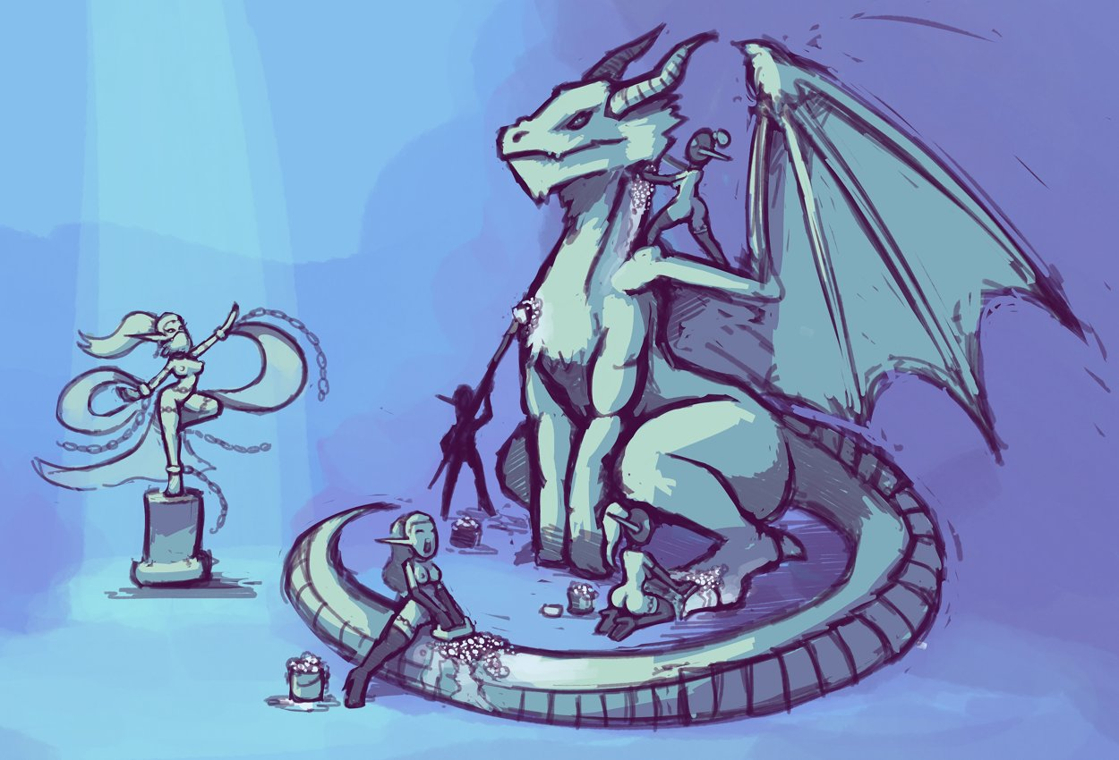 This pic, my Mxstr told me to draw a handful of elves washing a dragon