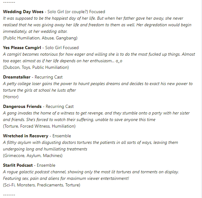 the new reward for $20 will be to claim me as an art slave for a time, I'll draw whatever is demanded of me. The look of it will by how elaborate the pic