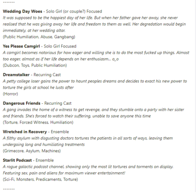 Starting October, i'll be changing my monthly exclusives to backstoried bdsm collections over several months, and eventually release the pack once finished!