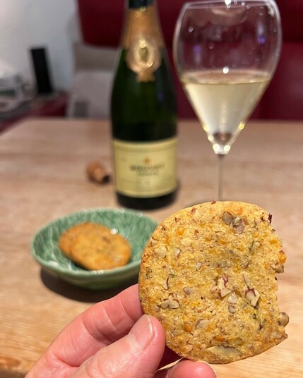 Pecan-Cheddar-Rosmarinkekse, passen perfekt zu einem Glas Crémant zur Einstimmung auf die Weihnachtsfeiertage. Leider gibt es krankheitsbedingt nicht die geplante Familienfeier bei der Tochter, also machen wir uns es halt zu zweit nett 🎄 #pikantekekse #suchtgefahr #food