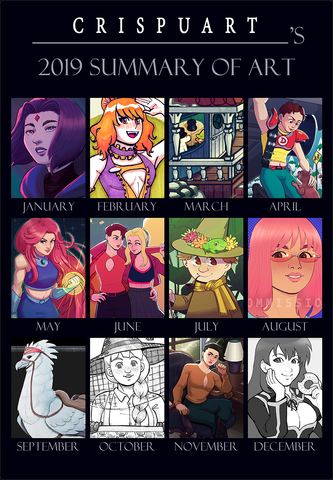 A bit late but here's my 2019 summary of art! My goal this year is to focus more on my own personal projects so I hope to fill up this year's summary with less fanart ✌ #summaryofart2019 #artsummary2019