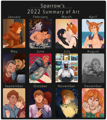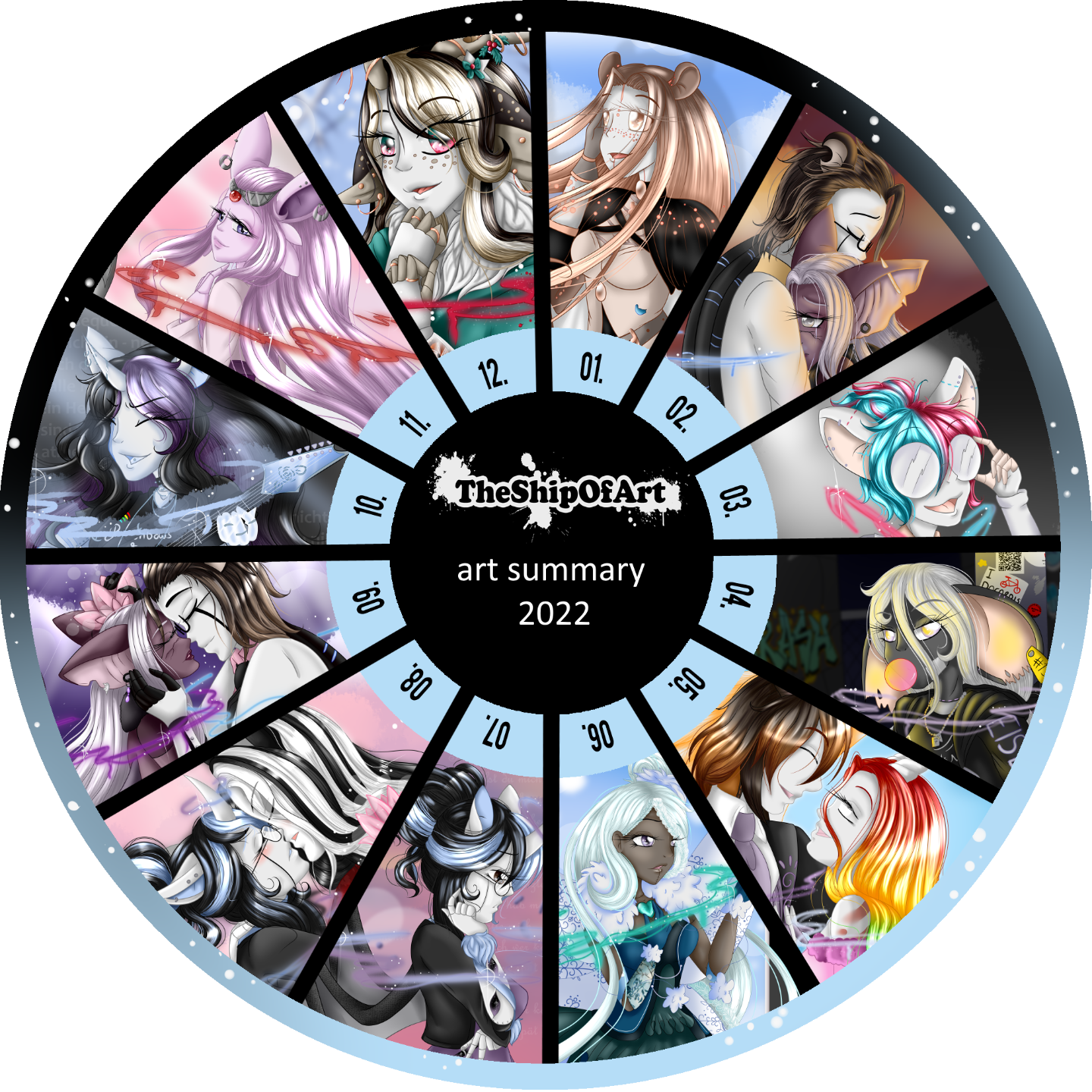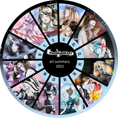 As always I'm late, but here is my art summary for the year 2022! I'm really proud of myself because, even though I'm drawing a comic in a hurry, I still make at least 1 finished colored art per month! What is your favorite?